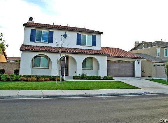 STANDARD SALE! TURNKEY! This ABSOLUTELY STUNNING 2 STORY HOME in EASTVALE area of CORONA features the most awesome curb appeal. Spanish hacienda style with beautiful arches on a pristine brand new neighborhood. As you walk in this open spacious floor plan with volume ceilings. A large spacious kitchen with beautiful wood cabinets offers lots of storage, GRANITE COUNTERS, TILE FLOORING and appliances. All brand new paint with neutral tone color accented with white baseboards and white ceilings. Beautiful bathrooms with wood cabinet, tile counter tops, tile floors and fixtures. Large master bedroom with double sink, walk in closet, roman tub and separate shower. stay cool with central A/c and heat. Step out to a beautiful patio area and fully landscaped back yard features alumawood patio for finishing touches. What a great home for BBQ's and parties with family & friends to gather and enjoy.