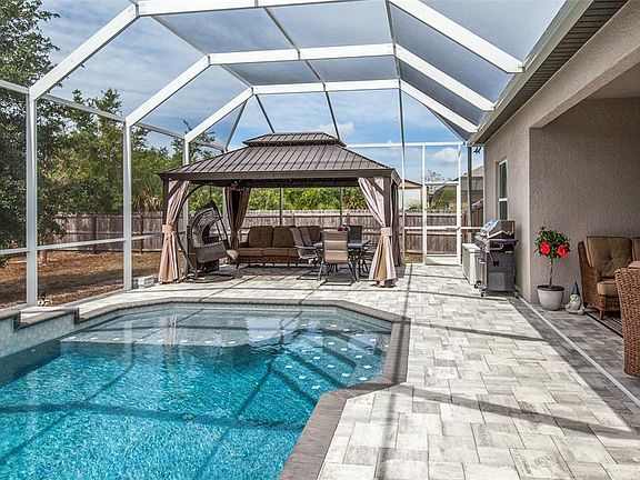 Are you feeling cramped in your current abode? Then this four-bedroom, three-bathroom property is for you! This broad and beautiful SALTWATER POOL home with stunning features such as tray ceilings and crown molding throughout is situated on a DOUBLE CORNER FENCED LOT in the wonderful community of South Gulf Cove! Step inside your new home and be greeted by an inviting foyer with access to three guest bedrooms, one of which has an en-suite bath and walk-in closet. The main part of the home features a very impressive living and dining area with inviting views of the lanai and pool. These areas are large, light, airy and the perfect place to relax with friends and family. The heart of the home is the kitchen! The well-laid-out kitchen features STAINLESS STEEL appliances, GRANITE countertops, a double oven, an abundance of cabinets, a large walk-in pantry, and a mammoth cooking island with plenty of seating. Youll find the spacious master suite is a true retreat, with a tray ceiling and views of the pool area. The master bath does not disappoint! It offers double vanities, a separate shower, a large soaking tub, and an enormous walk-in closet to keep everything neat and tidy. Last but not least, you can enjoy the Florida sunshine while relaxing with your favorite beverage and gaze at your garden inside the screened paved lanai or by taking a dip in your pool with a fountain. Your furbabies will also love the fenced backyard, which is perfect for exercise. Other features include a den with french doors off of the living room, a workshop area off of the garage, an indoor laundry room with storage and utility sink, tile throughout the main living areas, and hurricane shutters. Take advantage of a community park, while being just minutes away from Boca Grande, Englewood, and Manasota Beaches, world-class fishing, FIVE golf courses, TWO Spring Training baseball stadiums, and a variety of dining and shopping options. This home has been meticulously maintained and features numerous upgrades. This beautiful home is ready and waiting for you!