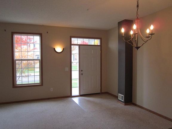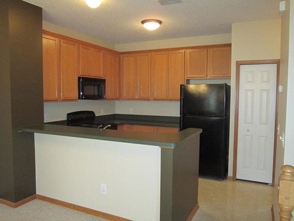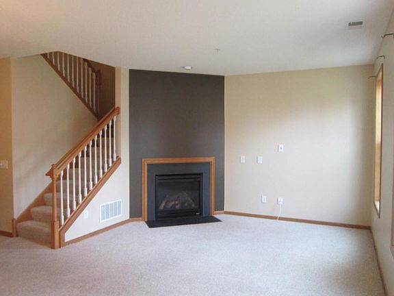 Spotless inside unit will show and sell! Spacious main level accented by a corner gas fireplace, open rails to upper level, half bath off kitchen area, elevated breakfast bar, white raised panel doors, upper level loft, 3 BRs, private master bath, upper laundry and more. Also features a double attached garage with rear access, central air, assn maintained and convenient location. HURRY!