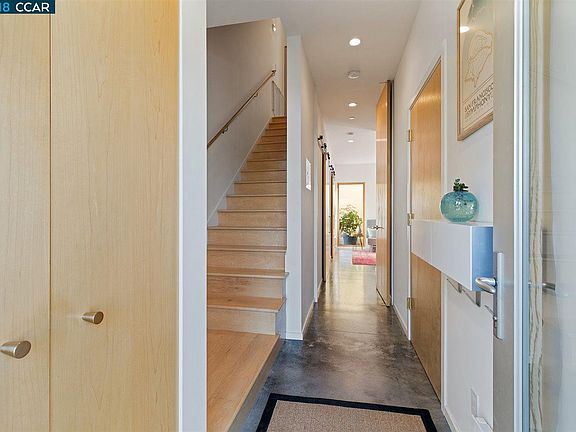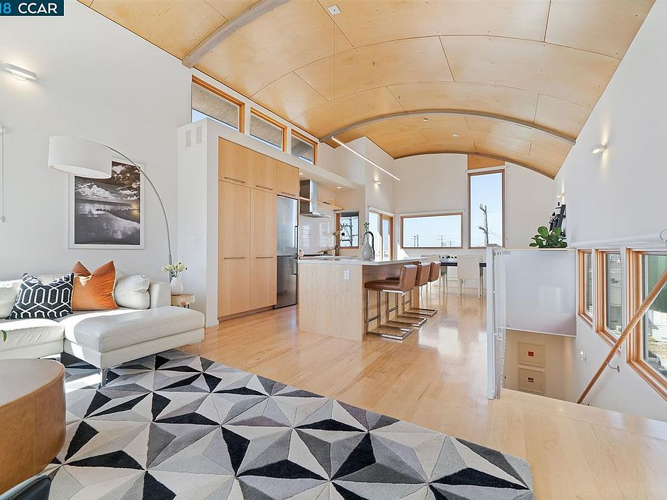 A modern home thats beauty is surpassed only by its ecological responsibility. All systems - energy, water, heating, fixtures and food - have been selected to allow you to live comfortably on a small footprint. Open concept floor plan with soaring ceilings, natural light, a chef's kitchen, and sweeping views of the bay from your private terrace. Conveniently situated between the Gilman Hub and Fourth Street Shopping, with an attached garage and easy freeway access.