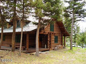 Fabulous private setting, 2 bedroom log home on 32.5 acres with 2000' of private stocked lake frontage. Large detached garage with additional one bedroom apartment above. Borders thousands of acres of Plum Creek land. Beautiful views, nice rolling property with lots of trees. Easily could be a horse property. The perfect Montana dream home!