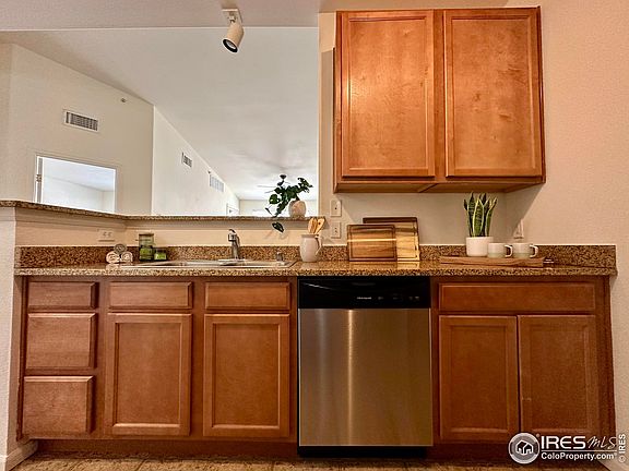 Welcome to this beautifully updated 2-bedroom, 1-bathroom condo in the highly desirable Blue Sky community. Offering 1,002 square feet of thoughtfully designed living space, this home boasts brand-new finishes and modern amenities, making it the perfect blend of comfort and style. As you enter, you'll be greeted by fresh, neutral paint and plush new carpet throughout the spacious living and dining areas. The dining area is illuminated by a stylish light fixture, adding a touch of sophistication. The fully equipped kitchen features a complete suite of brand new stainless steel appliances, beautiful granite countertops, and plenty of cabinetry for all your storage needs.The bathroom has been meticulously updated with a new sink, fresh paint, and more gorgeous granite countertops. You'll also find a luxurious, oversized tub/shower combination-perfect for relaxing after a long day.The main bedroom offers a private retreat, complete with a generous walk-in closet and new carpeting. The Sliding glass doors lead you to your own private balcony where you can enjoy stunning views of the Rocky Mountains - a perfect spot for your morning coffee or unwinding in the evening. There's also an additional private balcony with access from the living area.This home also comes with peace of mind thanks to a newer hot water heater, HVAC system, and AC unit.. Residents of Blue Sky enjoy incredible amenities, including an outdoor pool and hot tub, an indoor gym, walking trails, and numerous parks and play areas. Plus, you'll be just minutes away from the Orchard Town Center, the Denver Premium Outlets, and a variety of dining and entertainment options. A quick drive to both Boulder (30 minutes) and Denver (40 minutes), as well as easy access to the 470 tollway, makes this location ideal for commuters. In a welcoming and vibrant community, this condo offers both convenience and comfort-don't miss your chance to call it home!