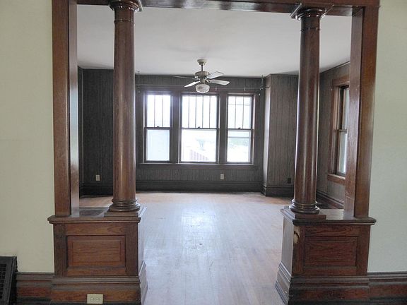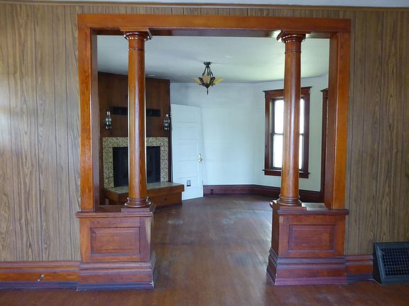 Bryant School area home on the South Side of Dubuque with 3 bedrooms, 1 bath and a carport. This home features hardwood floors, fireplace, colonnades between the living room and dining room, spacious open front porch and a patio. CAUTION: railing on stairs to the front porch is loose.