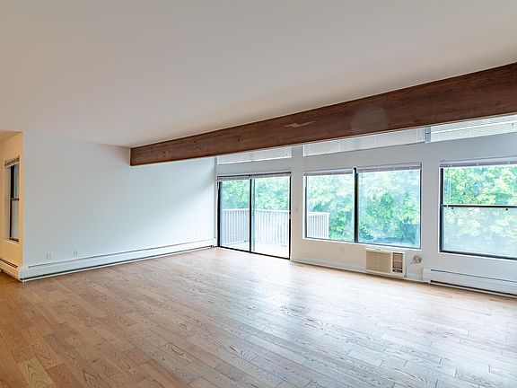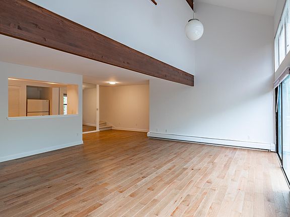 More of what you want a townhome for! Space, privacy and convenience in this Greenwich condominium. Large 2 Bedroom condo boasts over 1300 feet of living space. Welcoming open floor plan with wood flooring and vaulted ceiling arrange to fit your lifestyle. Floor to ceiling windows let you enjoy natural light and a largely unobstructed landscape, another benefit of the home's layout in the complex. The adjacent balcony provides added living space for cool mornings, outdoor grilling, and entertaining. The galley style kitchen features contemporary white cabinetry, stainless dishwasher and range and a sprawling butcher block counter plenty of space for grocery bags, food and party prep while still visually open to the living area and view. Upstairs, you'll find bedrooms with double closets and vaulted ceilings, giving you both space and storage. Time-saving conveniences include laundry in the unit and ample parking. Close to shopping, beach, commuting, restaurants in Greenwich and Stamford's Harbor Point. No pets allowed for tenants per condo rules. Heat and HW included. no smoking , no pets.