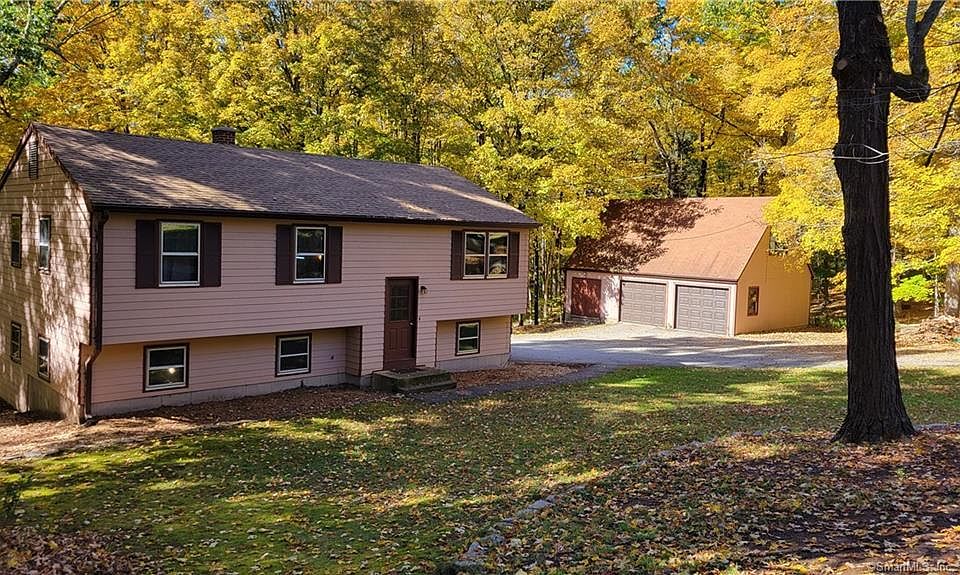 Three bedroom raised ranch for sale in Lebanon. Set on the back of this two acre lot, enjoy the private deck and forest views. The flat front yard is perfect for a soccer field, or any outdoor activity. This home has lots of features including a wood burning stove which heats the entire home, and an oversized two car garage with workshop. The garage also has a huge walkup loft which is wired for electric and has many possible uses. The house has a finished lowered level which consists of three rooms and has two walkout entrances. There is a bar area for a cool family room/rec room, an office area with shelving and a large bonus room. The bonus room can be used for multiple things, possible in-law apartment, studio, or rec room, it also has plumbing roughed in for a second bathroom. Newly refinished bathroom on main floor. Generator hookup, newer appliances and newer roof. All offers subject to Seller's finding suitable housing. ***Asking for highest and best to be sent by 11/8/22 NOON