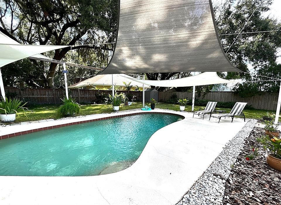 NEW ROOF-2021 - 4BR/2BA RENOVATED & UNIQUE HOME w/HEATED POOL offering over 2,500sq ft in this picturesque, storybook neighborhood where the streets are lined with majestic oak trees. No CDDs! This home exudes a warmth and natural charm to please any Homeowner - from the welcoming solid wood & stained glass front door to the cozy rooms also embellished with solid wood interior doors. Entering the home, guests are greeted by the charming Open Floorplan with the Living Room's vaulted ceiling, Fireplace and Skylight, then to the Dining Room's eclectic lighting and view of the Florida Room through to the in-ground pool in the backyard. The lavish Primary Bedroom feels like a retreat with it's generous size, Walk-in Closet and soft, soft carpet, along with the ensuite bathroom featuring an elegant Vanity, waterproof laminate and large walk-in shower with spa-like stone flooring. The other bedrooms in this split-floorplan, offer ample space for large furnishings and are located alongside the Hall Bathroom with an oversized vanity with double sinks and easy Walk-in Shower. (Bedroom #2 is shown with a King-size bed) The enormous fenced backyard offers a tranquil escape with the relaxing pool covered with decorative canopies & atmosphere lighting, offering the perfect setting for get-togethers & Cook-outs! A wide drive-gate opens directly to the stationary carport perfect to protect your boat in the backyard. Everything is done for you to just move-in and Enjoy Life in this Ideal Home! - Recent Renovations include; New Roof & Skylights(2021), Culligan Whole House Water Filtration/Softener(2021), Entire House Re-Plumbed(2020), Water Heater(2021), Pool Heater(2022), Electrical Panel replaced(2020), Water-proof/scratch-resistant Laminate Flooring & new Baseboards installed(2022), Primary Bath total renovation(2023), Kitchen renovation(2023) Incl. new Stainless Steel Appliances, new Lighting, new Kraus sink & cabinet hardware replacement, Ceiling Fans(2021), New Pool Pump(2024), New Pool Light(2021), New Carpet(2022), Guest Bath Renovation(2021), All Electrical outlets, switches & covers replaced(2022), new Window Shades installed(2021) and the Interior & Exterior of the Home have been recently painted. Disney, Universal & SeaWorld are conveniently located about 30 minutes away making it easy to enjoy the Magic of the Orlando Area any day! Downtown Kissimmee offers many family-owned restaurants, shops, event venues & a Sunrail/Amtrak Station, as well as Kissimmee Lakefront Park, Big Toho Marina & Fishing Dock, along West Lake Toho which is home to numerous festivals & celebrations throughout the year. Just a short drive to St Cloud which also offers a Lakefront Park, Marina and a Beach. Take the 3D walk-through Tour - Make this your Home Sweet Pool Home!