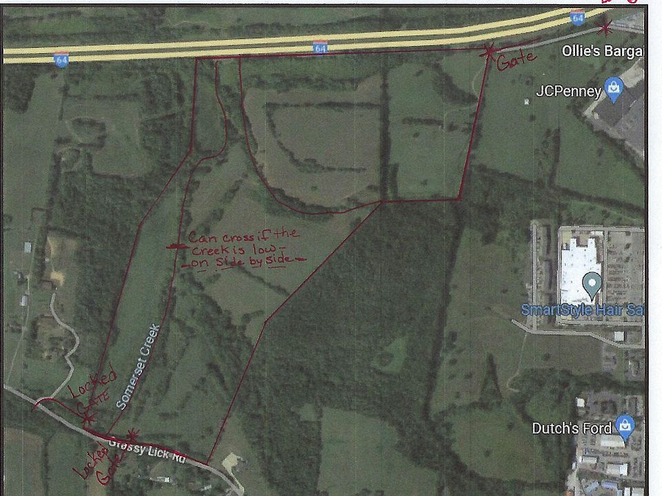 156+/- Acres presently utilized as a Beef Cattle; cow-calf/hay farm located a mile off the By-Pass. Shelbyville silt loam soils on the ridges, pastures are mixed grasses and legumes. 25 acres of Huntington silt loam, Creek bottom land. Livestock water provided by Somerset Creek, branches w/public water available. Lot of Walnut/Oak trees. Well located property with additional access from Young Lane behind ''Ollies''. which would make the farm conducive to division. First time on the market in approximately 4 generations.
