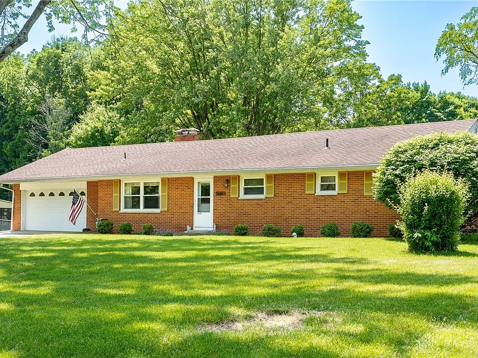 Welcome to Howell Woods ! 4 bedroom , 2 bath brick ranch situated on a beautiful 1/2 acre lot. Brand new furnace ! Driveway newly sealed. Hardwood floors in all bedrooms. Sellers also believe there is hardwood under carpeted areas but not verified. Formal living room and family room with WBFP’s. Lovely, large eat-in kitchen with pantry and solid wood Amish built cabinets. Nearby large walk-in storage closet. Florida room with endless possibilities. Over-sized two car garage with attic storage. Beautiful tree lined backyard. Sellers do not warrant fireplace’s/ chimneys and water softener. Roof is approximately 13 years old. High schooler’s are within walking distance to Beavercreek High School !