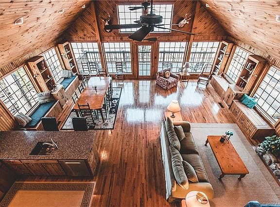 What a view! You can see the Lake from about every room in the house! Beautiful wood paneling and flooring throughout the home. Was used as a VRBO by current owners when the family did not use it! Can be purchased furnished and move right in! Low maintenance interior and exterior. Sleeping Loft if perfect for overflow crowds. Basement has plenty of storage for water sports equipment , etc. Come See, and Enjoy!