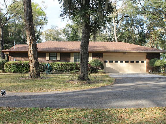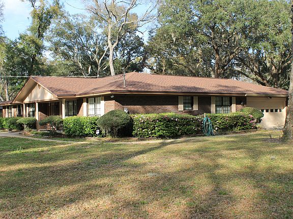 Country, Beach, & City...Close to everything yet away from it all! 4/2.5 brick beauty features a foyer, formal living room, formal dining room, large kitchen with custom cabinets, breakfast area and closet pantry. Family room with vaulted, beamed ceilings and fireplace! Owner's suite complete with walk-in closet & bath w/shower. Guest bedrooms are large, one with built-in shelving and window seat overlooking the back yard, perfect for an office or activity room! Stately oaks and azaleas accent the over one acre property with a circular drive, a separate drive to 2.5 car garage & separate detached 2 car garage/workshop. A fully enclosed gazebo is the perfect place to be creative. New roof in 2015, new a/c 2020, copper overhead piping, irrigation system & artesian well. View today!