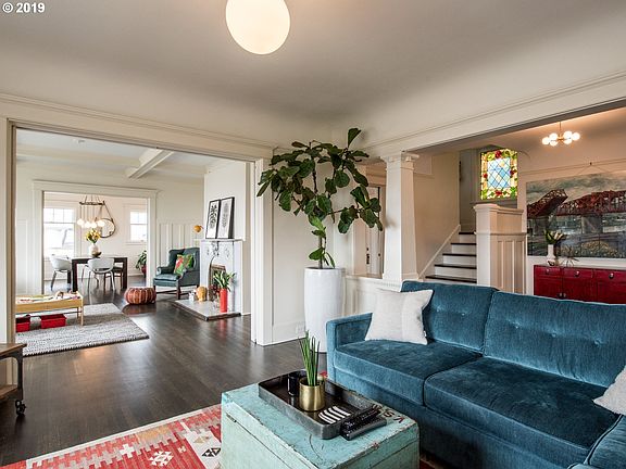 Stunning Old Portland charmer with jaw dropping views of the city & mountains. Enjoy the views inside the home or on the wrap around porch. Lovely, spacious and established. Live in nanny quarters , a great space for multi-generational living or AirBnB floor downstairs. Great layout with 4 beds upstairs. Low maintenance yard! Less than 1 mile walk to Downtown, the Pearl, the Rose Garden & Ainsworth Elementary. [Home Energy Score = 1. HES Report at https://rpt.greenbuildingregistry.com/hes/OR10067731]