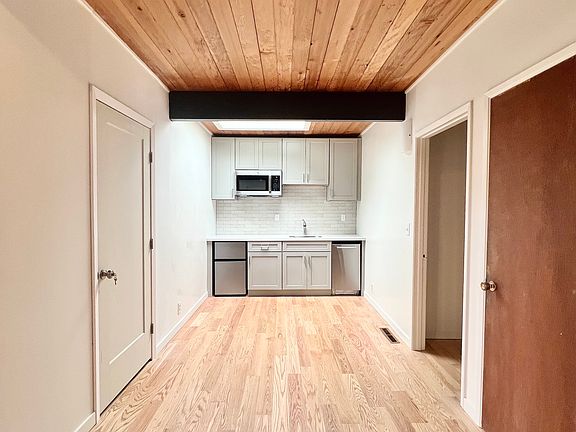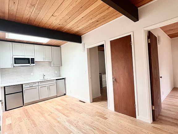 There are two rooms in the back, available for rent separately or together, each with its own private entrance. The kitchenette includes an induction cooktop, wash and dryer , no heavy cooking allowed.