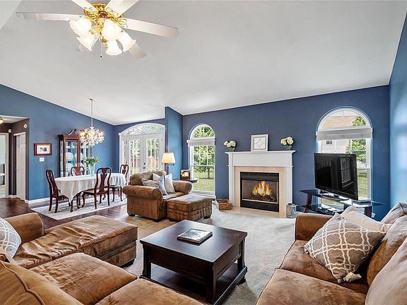 Welcome to  this stunning custom-built ranch by Herb Stewart, offering over 3200 sqft of exquisite living space. The main floor boasts 3 bedrooms and 2 baths, featuring wood floors in the entryway and a vaulted great room with a cozy fireplace. Entertain in the updated eat-in kitchen with gorgeous wood floors, quartz counters and stainless steel appliances, or enjoy meals in the adjacent dining room. The fully finished lower level impresses with a spacious family room, a wet bar, a private office, a full bathroom, and the potential for a 4th bedroom. Step outside to a charming patio on a level lot, perfect for outdoor gatherings. With a 2-car garage and a location in a fantastic neighborhood close to everything, this home is packed with too many updates to list. Don't miss out on this perfect blend of luxury and comfort!