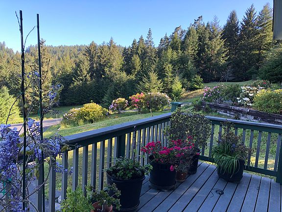 Exceptional country living, just minutes from town. Enjoy sunsets, and an incredible view of the bay, ocean, and city lights from this 11.9 acre parcel surrounded by trees and rolling meadows with rhododendrons and wild flowers. Located in the gated Idylbear Subdivision. A unique 1 bedroom, open floor plan home with a covered deck for entertaining. Live in it now, build your dream home, or enjoy it as a weekend getaway. Finished garage has a full bath. So many possibilities for this property with a contiguous 5 acre parcel also offered for sale. See MLS #251081. Jacoby Creek School District.