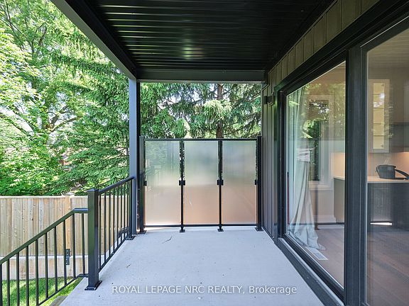 Life is easy at the Fonthill Yards! Known as the David model, this 2 bedroom, 3 bathroom condo townhouse offers you a stunning modern design with all the amenities you have been dreaming of. Located at the back of the Fonthill Yards site, you can enjoy a nice quiet setting inside and out. The main floor offers stunning 10 foot and 20 foot ceilings, gleaming hardwood floors, a spacious foyer that is absolutely filled with natural light, a 2 piece bathroom, mudroom, pantry, a spacious living room, dining room and a stunning gourmet kitchen with quartz counters, a custom designed bar cabinet, stainless steel appliances and gorgeous LED light fixtures & pot lights. Remote controlled blinds make it easy to create privacy in the evenings. Travel upstairs to find 9' ceilings, the serene primary bedroom with a private spa inspired ensuite bathroom & walk in closet, 2nd level laundry and a large second bedroom with it's own ensuite. Both bedrooms feature large sliding doors leading out to their own balconies. The unfinished basement is currently being used as a home gym and would be a great space for a third bedroom, rec room and another bathroom (3pc rough in). Enjoy a beverage with friends and family on the covered backyard patio while the kids enjoy playing on the lawn. Parking for 2 vehicles between the driveway and attached garage. Only steps away from downtown Fonthill shopping & restaurants, the new Meridian Community Center, St Alexander Elementary school, the Steve Bauer Trail and so much more. Across the street from Sobeys & the LCBO. A few minutes drive away from world class golf and incredible farmers markets. Easy access to the QEW via Highway 20. If you have been after an incredible Fonthill location but have been longing for something with modern design then this is the condo for you!