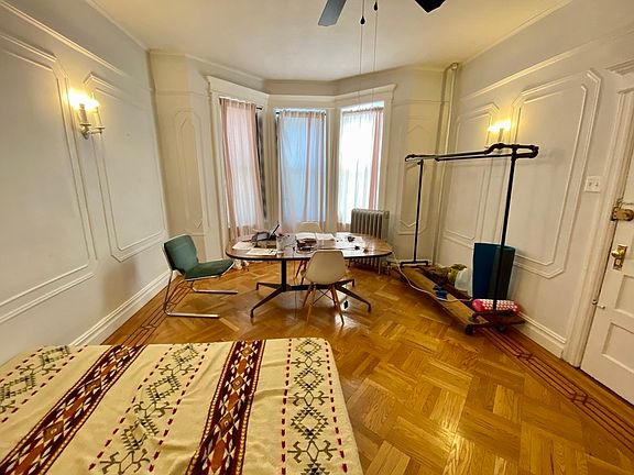 Gorgeous 2.5 bedroom parlor floor in Crown Heights 2 family house from 1900. The house is gut renovated. 1100 sqf with many orginal details including beautiful original hardwood floors. Brand new boiler. New appliances in kitchen. There are 2 very large rooms with 3 bay windows overlooking front and back yards. and 2 inner rooms without windows. Huge bathroom with 2 sinks and large new tub. There is a very large beautiful private backyard with a picnic table and grill (Approx 1000sqf) with access only from this unit. W/D is free in basement shared with upstairs unit near Utica Ave, 5 walk mins to Utica 3, 4 trains. 12 mins walk to Utica A/C trains.