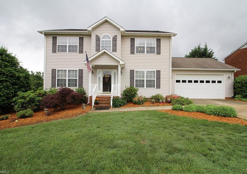 KERNERSVILLE 3Br 2.5Ba on cul-de-sac! USDA eligible! Open kitchen with Himac solid surface countertops, pot rack. Hardwood floors on most of main level. Large master w/beautiful bath, double vanity, garden tub. Large bedrooms. Updated half bath with granite. Huge den currently used as sewing workshop with French doors & tile floor. Convenient mud room off garage w/laundry room. Plenty of storage! 12 x 16 wired workshop w/100 amp service, insulated-heated & cooled, peg board walls, cabinets & workbench.