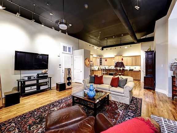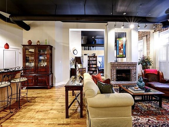 Sophisticated loft style condo in premier Brookhaven location seconds from top restaurants, shoppes. Home features 12 foot high ceilings, double sided fireplace, exposed brick walls, hardwood floors. Open floor plan perfect for entertaining. Kitchen has large island, beautiful cabinetry. Upgraded lighting throughout, plantation shutters, fresh paint add the perfect touches to this immaculate home. Situated on the quiet back side of community. Detached 1 car garage.