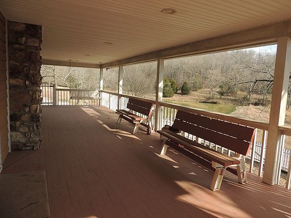 HIDDEN TREASURE AT THE END OF VIRGIN ROAD! This amazing 3,700+ sq. ft. 3BR/3 1/2BA cedar/rock farmhouse style home is secluded on 40 wooded acres m/l and overlooks a beautiful pond. The exterior of this home features a covered porch/deck on three sides, a decorative fence around the perimeter of the yard, a she shed and 50' x 33' four car garage with two double rollup doors and one single. The interior of this fascinating home has 2,500+ sq. ft. on the main floor and boasts an inviting open floor plan with lots of natural light. The living room features vaulted ceiling with beams, rock fireplace and two sets of French doors leading onto the porch. The kitchen has loads of cabinets and counter space, bay window over the sink, sky light and huge bar separating it from the dining area. The main floor also houses two master bedrooms with adjoining baths, walk-in closets and tray ceilings with intricate crown molding accents. The main master also has French doors leading onto the porch, his and her walk-in closets, adjoining bath with sunken jetted tub, walk-in shower and sky light. A half bath is also located on the main floor. Lots of closets for storage in this home....You'll find three sets in the utility room, more in the hallway plus an additional sky light. As you take the winding stairs to the basements, you'll find an additional 1,100+ sq. ft. finished out with the third bedroom and full bath, plus a large kitchenette, office and more storage. The basement also has a 37' x 40' unfinished section that houses the wood burning furnace, water softener and lots of additional space for a rec area. This great home has three sources of heat being propane, heat pump and a wood burning furnace. The home has a security system in place and lots of extras too numerous to mention. The 40 acres m/l are mostly wooded with approximately 10 acres open.