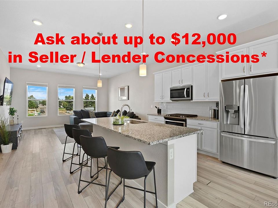 SELLER IS OFFERING A $5,000 CONCESSION TO ANY BUYER UNDER CONTRACT BY OCTOBER 20th, 2025. This is in addition to up to $7,000 from Lender. Please call Seller Agent for more details. This beautifully designed 3-bedroom, 4-bathroom townhome blends modern style with exceptional livability in the heart of Denver. Expansive windows frame mountain and city views, filling each level with natural light and a warm, welcoming atmosphere. The chef-inspired kitchen is the centerpiece of the home, featuring a generous island, gas range, walk in pantry and granite countertops—perfect for both everyday living and entertaining. The open-concept living area offers seamless flow for gatherings, while private retreats are thoughtfully placed on the upper levels. The primary suite offers spa-like luxury with dual vanities and white quartz countertops, creating a serene space to unwind. Additional highlights include whole home water softener, an attached two-car garage, a low-maintenance HOA, and smartly designed finishes throughout. Located in Denver’s Midtown neighborhood, this property is a short distance to parks, open space, and miles of trails, with neighborhood favorites like Early Bird Restaurant and Bruz Brewery just around the corner. Combining comfort, functionality, and convenience, this residence offers an unparalleled opportunity to experience modern Colorado living. THIS HOME QUALIFIES FOR SPECIAL FINANCING AND A LENDER CONCESSION FOR UP TO $7,000 OF THE LOAN. INQUIRE WITH LISTING AGENT or CALL RICK DEMARIO AT SUNFLOWER BANK TO LEARN MORE: 920-450-3180.