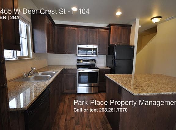 SCHEDULE A SHOWING ONLINE AT: showmojo.com/lh/874fbee054 Welcome to the beautiful Linder Springs townhomes where your beautiful townhome awaits! Located in the Paramount Subdivision, right on the corner of Linder Rd and McMillan Rd. All of the townhomes are energy efficient and with two levels, so there is no one above or below you. This floor plan is 1258 square feet, with two bedroom upstairs, and the third downstairs. The kitchen features stainless steel stove and microwave with an all black refrigerator and dishwasher. Youll enjoy eating at the granite countertop breakfast bar with tons of natural light from the sliding glass doors in the living room. These townhomes are walking distance to Dutch Bros, close to Fred Meyer and Rocky Mountain High School. There is a 24 hour state of the art gym for the tenants as well as a clubhouse, available for rental. Other community features include: covered reserved parking, Dog Park, grilling area, playground, and each unit has a stacked washer and dryer. *For more information or to apply, please visit our website at www.parkplaceid.com