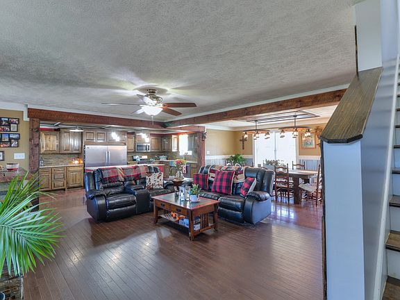 MOVE on out to the country!!! This is a great mini farm w/ too many features to list! Beautiful 4 BR/3.5Bath (3 BR septic) home snuggled on 12.66 acres. Home features include gas fp,HUGE eating area, open floor plan that's great for entertaining, covered porches, a/b ground pool w/ deck, fenced, horse barn w/5 stalls, 4 pasture areas & 2 holding lots,camping area, hunting stand, 3 implement sheds, covered concrete area for storing hay, & an old milk barn.