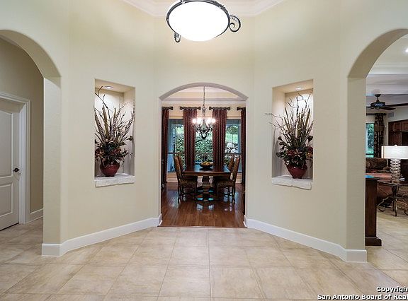 Serene & Private Custom 1 Story Hill Country Custom Home Nestled on 1.156 acre lot Backing up to Government Canyon State Natural Area. Breathtaking views from front & back patios! Soaring ceilings, abundant windows, & wood floors. Oversized 3 car dream garage boasts epoxy flooring, 14' ceiling, & 26' deep by 32' wide. Recent high quality roof, interior/exterior paint, top of the line carpet, & all bathrooms, kitchen, & laundry upgraded with granite/quartzite counters.Gas cooking & new KitchenAid appliances.