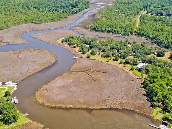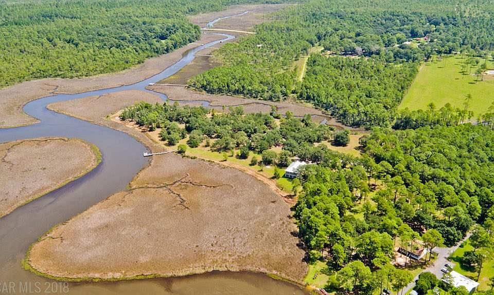 Over 3,800 feet of waterfront along beautiful West Fowl River and nearby bayous creates a private riverfront retreat! With 20 acres (uplands and marsh), this property features a charming cottage with 3 bedrooms and 3 full baths and was built as a Parade Home in 2008. As a popular vacation rental, the cottage has been beautifully maintained, and features fiber cement siding, composite decking, foam insulation, and over 1,400 sf of screened porch areas, both upstairs (fantastic sunset and river views) and under the house. The raised cottage also features a future elevator space, outdoor shower, and enclosed storage. Catch lots of fish from the dock! Perfect as a private home, vacation rental, or as a development project.