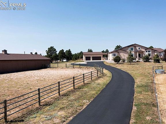 Welcome to a stunning 13.51-acre Colorado estate where elegance, comfort, and versatility come together. With 7 bedrooms, 5 bathrooms, and expansive living spaces, this home is ideal for multigenerational living, entertaining, or simply creating the lifestyle you’ve always envisioned. Inside, soaring ceilings and walls of windows fill the home with natural light. The chef’s kitchen opens seamlessly to dining and gathering areas, making it the perfect hub for family and friends. Multiple bedroom suites provide privacy and comfort, while the finished lower level expands your options with room for recreation, a home gym, guest quarters, or a private retreat. Equestrian enthusiasts will appreciate the remarkable 15-stall barn, complete with space for training, boarding, or personal use. The acreage offers fenced pastures, riding opportunities, and plenty of room to bring your vision to life. A 3-car garage ensures convenience for vehicles, storage, and equipment. Whether you dream of a multigenerational homestead, a luxury equestrian property, or a private country estate, 14650 Eastonville Road offers a rare opportunity with endless possibilities. This is truly a must-see property for those seeking the perfect blend of luxury, land, and lifestyle.