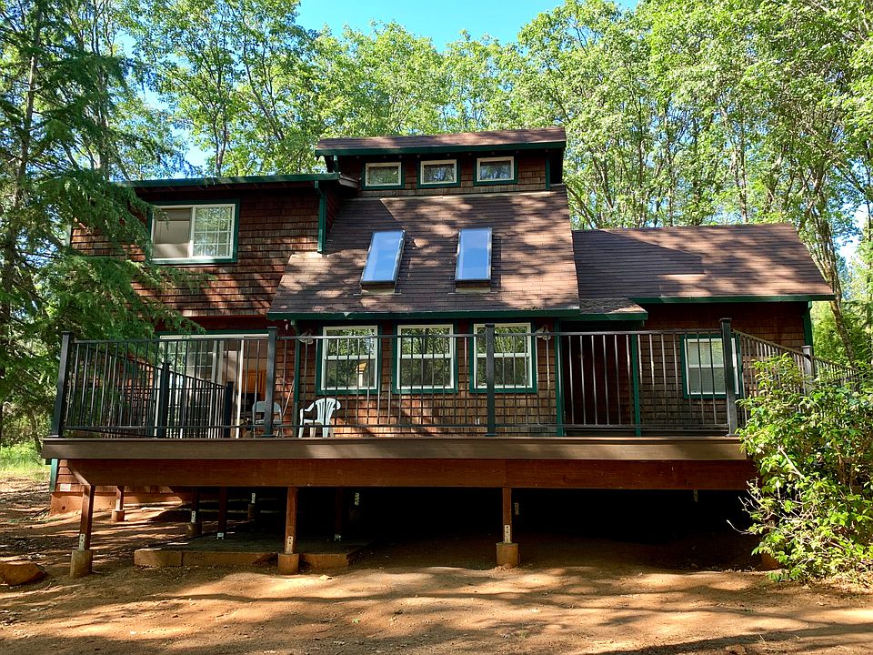 RUSTIC CONTEMPORARY residence offers the best of Sierra Foothill Living. Located on nearly 1.5 acres of use-able and PRIVATE forested land Interiors exemplify clean contemporary open spaces featuring inlaid hardwoods and rustic beamed ceilings. New composite 912 square foot deck nicely complements the structure. Generous light filled kitchen is the heart of the home and adj. to the GREAT ROOM. Master Suite with dream bath is adj. to the LOFT/OFFICE. Fresh, cool, reliable well water at 16.5 gallons per minute flow. Fully fenced and gated. This home is only three miles from Cedar Ridge, four miles from downtown Grass Valley, and eight miles from downtown Nevada City, but feels like a remote forest retreat. Your paradise home in the California gold country.