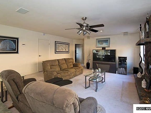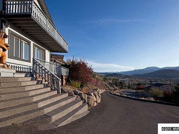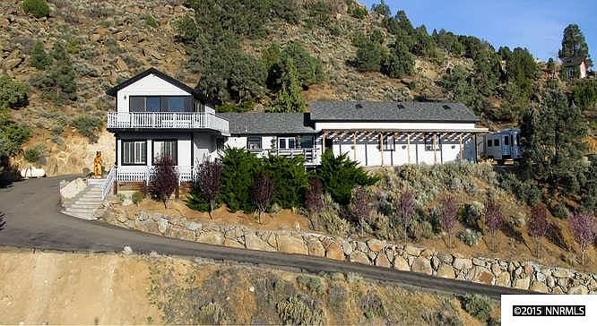 Fabulous opportunity to enjoy mountain, city and valley views from your oasis in the sky perched atop a bluff in the Virginia City Foothills. Private entrance with security gate leads to a large driveway/parking area and a 4-car garage which will also accommodate a 45'' RV or perhaps 2 additional cars. RV door is 12'' high and could be extended to 14''. Kitchen and all bathrooms have been updated. Meticulously maintained. One bedroom is currently used as an exercise room, but