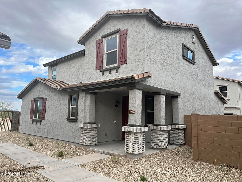 MLS #6818238 New Construction - Ready Now! Welcome to the RM4 floor plan—the largest home design at Avila at Rancho Mercado! This spacious and thoughtfully designed layout is perfect for modern living. A charming front porch invites you to relax and connect with neighbors. Step inside to a grand foyer that leads you to the powder room, garage, or the open-concept kitchen, dining, and great room—ideal for gathering and entertaining. Upstairs, you'll find a versatile loft, secondary bedrooms with a shared full bath, and a luxurious primary suite featuring dual sinks, a split tub and shower, and a walk-in closet. Make yourself at home in the RM4! Structural options added include: super shower at primary bedroom.
