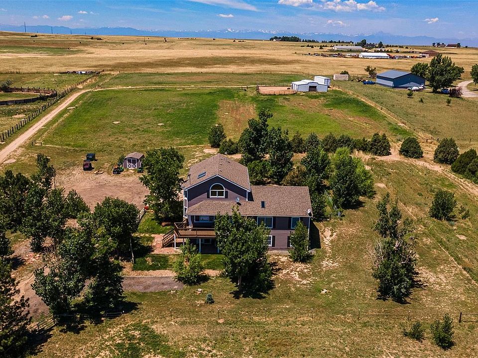 Come check out this amazing horse property, minutes away from Barr Lake State Park! Situated on just under eight acres, this home is a true example of country living at its finest. The land is ready for you to move right in, between the three fully fenced pastures and private fully fenced backyard. There is a 36X36 three stall horse barn with additional inside foaling stall, 12X24 loafing shed, storage shed, storage trailer, plus a road around the property has already been cut in for you. You'll be equally impressed by the home itself, boasting five bedrooms with a main floor primary, an office, amazing vaulted ceilings with an abundance of natural light, a walkout basement with a full second kitchen and second laundry, and so much more. The large deck is perfect for morning coffee or a wonderful Colorado evening at dusk. The septic and leach field have been redone in the last two years at a cost of roughly $37,000, plus the well is over 600 feet deep. The land itself is Zoned A-1, allowing for more versatile use than many other homes in the area. The roof, gutters, exterior paint, and downstairs carpet are all new as of 2024. Interior paint and blinds were done in 2018. Enjoy your own land in the warm months, and stay cozy by one of the TWO efficient pellet stoves, one of which can be controlled by Bluetooth, in the cold months. This home also provides easy access into Brighton, is less than 30 minutes to the airport when needed, and less than 45 minutes to downtown Denver. Between the land, location, and home itself, this is an extremely well rounded property with so much to love, and virtually impossible to find wrapped in one. Don't wait, and schedule your own private showing today!