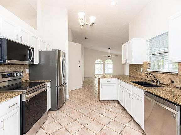 Beautifully remodeled 3/2 plus small office on a fenced one acre on a paved road!. Detached 18 x 20 metal carport in addition to a 2 car garage and 13x24 metal shed. Brand new stainless steel appliances, refinished white kitchen cabinets and granite counters. New flooring, paint inside & out, well pump, hardware, light fixtures, light fixtures & ceiling fans. Vaulted ceilings in the living areas and master bedroom. Ac replaced in 2021, water heater in 2018and roof in 2017. Septic tank drained & inspected this year. Fenced one acre lot on a paved road. Solid concrete construction.