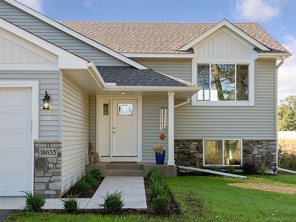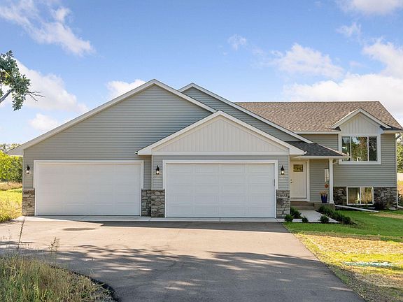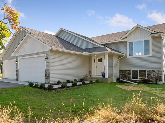 Beautiful “like new" 3 bedroom home on 3+ acres!! This beautiful split-level home was built in 2021 and features large foyer with coat/storage closet. The upper level is flooded with sunlight and has an open concept with vaulted ceilings in living room & kitchen/dining area, primary bedroom w/3/4 bath, 2 more bedrooms and a full bath. Kitchen has stainless steel appliances, white enameled custom cabinets and large granite center island. There is also a patio door off the dining area if you want to add a deck. The basement is unfinished, with plenty of room for a 4th bedroom, family room, storage/utility/laundry area, and is plumbed for a third bath. Bring your ideas to make this space your own! Attached/insulated FOUR car garage! The lot is 3+acres, plenty of room for chickens, goats, horses, and gardens! Right next to horse and snow mobile trails! A short walk to the Sherburne Wildlife Refuge, great hiking and lots of wildlife. Less than 10 minutes to Hwy 169 for an easy commute.