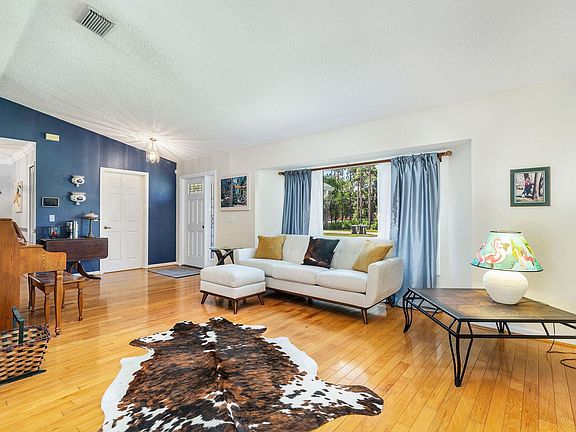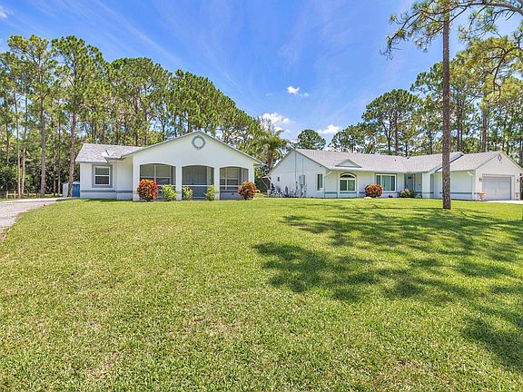 Charming 3 bdrm, 2 bath CBS POOL home plus 2 bdrm, 1 bath GUEST HOUSE (total 2,738 sf) on a 1.29 ac homesite with pond. Beautifully renovated main residence offers 1,718sf; impact glass throughout; vaulted ceilings; open floor plan; custom quartz kitchen w/white shaker cabs & SS appliances, dining room + eat in kitchen; oak floors; laundry room; covered lanai overlooking screened pool & pond. Light & bright primary w/walk in closet, ensuite w/soaking tub + separate shower. 2 guest bedrooms w/hall bath, granite vanity & tub. Guest House; 1,020sf, 2 bdrms, 1 bath, kitchen, living room + ulility/storage. Additional features: Impact glass & security systems in both houses, oak flooring, crown molding, wood ceiling on lanai, irrigation, 2 septic systems, paved road. Do not miss this one!