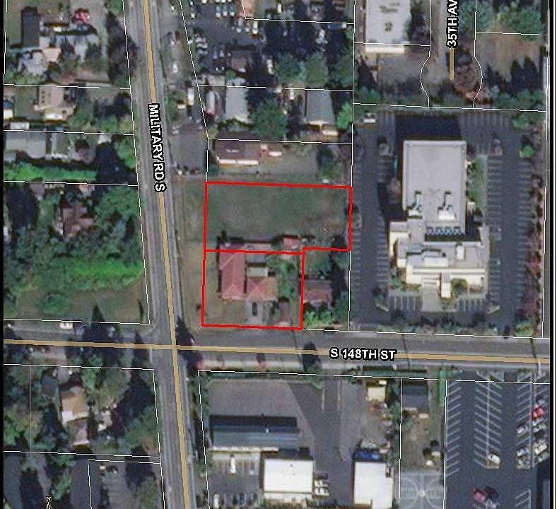 Rare prime location only 2.1 miles from Seattle - Tacoma International Airport and just off of Intentional blvd. The property is zoned RC - (Regional Commercial ) that allows for a variety of uses including Multi family ( 60 units per acre ) Mixed use , Senior housing. The sale includes both 14654 Military Rd S Parcel # 0040000820 , 0040000821