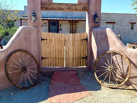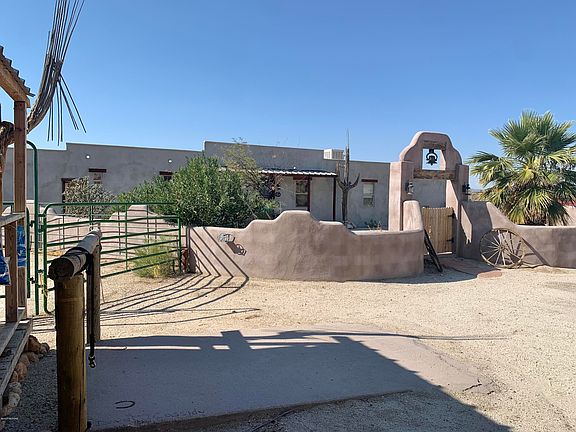 Very inviting courtyard and beautiful mountain views. 3 bedroom, 2 bath cozy manufactured home has been remodeled inside and out with a Santa Fe style touch. Enjoy the beautiful desert sunsets from the back yard or from the above ground heated lap pool. Room for horses. The western style tack room stays and the immobile tractor trailer stays and can be used as a garage or shed. Horse panels convey. This is a very cute and cozy home located near the Equestrian Trail. Seller is selling ''As Is'' and cash only.