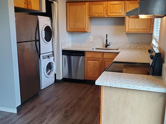 Address is 14655 SW 76th Ave Unit 23 Single level, duplex style with fresh paint, new air conditioning, quartz counter tops, and carpets in bedrooms. Includes washer/dryer in unit, deck, community pool & garden spot, and one reserved covered parking spot. Available now; easy to show; pets welcome - smokers not. Clean, spacious, and quiet community! Credit Score must be over 650 to qualify. Rent includes water, sewer, garbage, and covered parking space. Also includes privileges to pool, club house, and garden area. Credit score must be of 650. Includes water, sewer, garbage, and covered parking space. Privileges include club house, pool, and garden space.