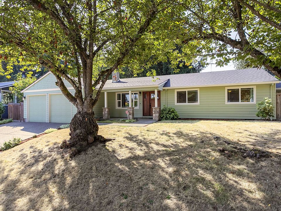 This home features a covered front porch designed to greet guests warmly, complemented by a charming craftsman-style front door. Inside, real wood floors and a wood-burning fireplace create an inviting and comfortable atmosphere in the main living areas. The kitchen, with tile and newer appliances including the refrigerator in 2017, the dishwasher and gas stove (installed in 2018), seamlessly connects to both the dining and family room. The family room opens directly onto a covered patio and a spacious, low-maintenance yard enhanced with turf installed in 2023. The primary bedroom is generously sized and includes a cozy sitting area, conveniently located adjacent to the updated hall bath. The second bedroom is also accessible from the hallway. A third bedroom, featuring hardwood floors and a nonconforming layout, serves well as an office or craft room. The utility room, just off the family room, has a half bath that has been recently updated. With the roof and siding being installed in about 2017 (prior to this purchase), the installation of the furnace and heat pump in 2024 completed, most of the large maintenance items have been addressed. Set on a quiet cul-de-sac, this home offers privacy and comfort. It is conveniently located just minutes from a hiking path, one block from the school pathway, and a short distance from Summerfield for great golf or simply paths to enjoy. Call today for a private showing.
