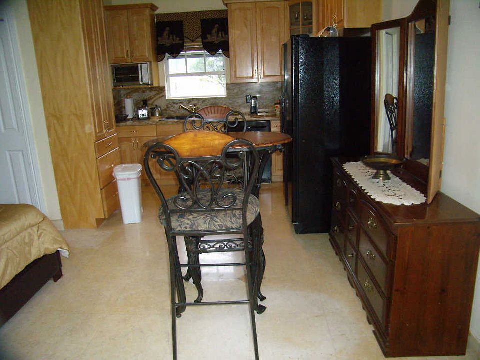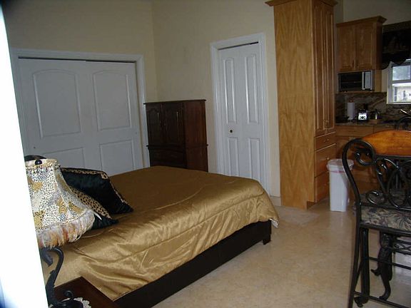 Fully furnished studio/efficiency apartment with full kitchen and full bathroom attached to the main house. Private entrance with private parking space in large driveway. The kitchen is equipped with a pantry, range, microwave, dishwasher, Convection oven and refrigerator. Full bathroom has a tub/shower and lots of closet space. Unit features wood cabinets, granite counter tops and 18'' Coral Stone flooring. There is a table and two chairs, Queen size bed with nightstands, console and two dressers. All utilities and internet are included. Tenant to pay $10/monthly for digital cable box. There is no washer or dryer in the unit. No pets or No Smoking allowed. PS! Property in The Acreage, not in West Palm Beach; that's only the zip code (WPB).