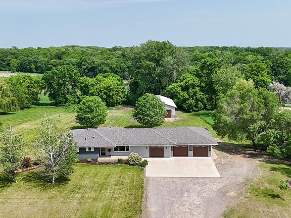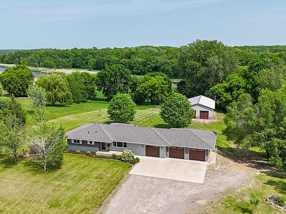 This updated 4-bedroom, 3-bath walk-out rambler sits on a private 3+ acre lot along the Clearwater River, offering access to Weigan Lake and excellent spring fishing. The home features numerous updates completed in 2018–2019, including the roof, windows, and cabinetry. Inside, you'll find solid oak doors throughout, a spacious lower-level family room complete with a pool table, and a dual fuel heating system with forced air (gas and electric plenum), an electric heat pump, and a 100-gallon water heater. Step outside onto the 16x12 deck to enjoy peaceful views of the property. The neighborhood offers deeded access to a 66-acre private park with scenic trails, and the river provides a perfect route for canoeing or kayaking to Weigan Lake. Ample storage is available with a 3-stall attached garage and a detached 56x32 pole building. Don't miss out on this rare find in South Haven!