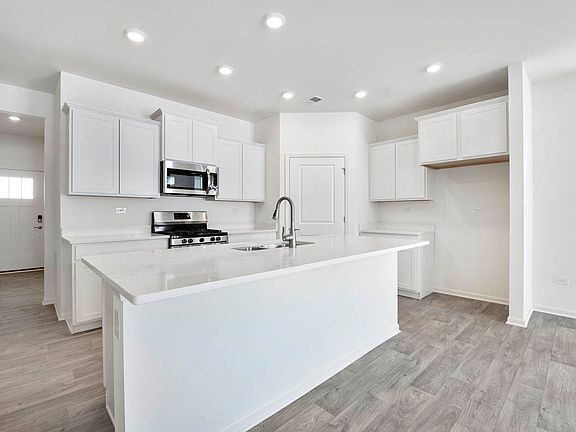 Envision yourself in a ranch-villa type located at 14656 S Azalia Cir in our Greenbriar Community in Plainfield, Illinois. This beautiful new Arlington plan includes lawn service, snow removal, sod front and back, landscape and covered back patio to relax on. This ranch home will be ready for an early summer delivery! The Arlington plan offers 1,660 square feet of living space with 2 bedrooms, 2 full baths, 9-foot ceilings and luxury, easy-to-maintain, scratch and water-resistant vinyl plank flooring. When you first enter the home, the secondary bedroom and full bath is located up front for privacy. Walking down the hall, is the garage entry with nice landing space to take off your shoes, hang up your coat in the closet adjacent to the laundry room and flex space. This flex space is suitable for an office, hobby room, sitting room, formal dining room or even guest sleeping space. Next you will walk into the open concept luxury kitchen/great room with deluxe quartz countertops, 42" designer white cabinets with crown molding and soft-close feature. Large walk-in pantry features shelving for your storage needs and over-sized island with overhang is great for kitchen prep or entertaining and has stainless steel sink with disposal. Enjoy your private get away with your spacious primary bedroom/en suite bathroom with a raised height dual sink, quartz top vanity, and walk-in seated shower with ceramic tile walls and clear glass shower doors with transom window above for natural light with huge walk-in closet. All Chicago homes include our America's Smart Home Technology, featuring a smart video doorbell, smart Honeywell thermostat, Amazon Echo Pop, smart door lock, Deako smart light switches and more. Photos are of a similar model home. Actual home built may vary.