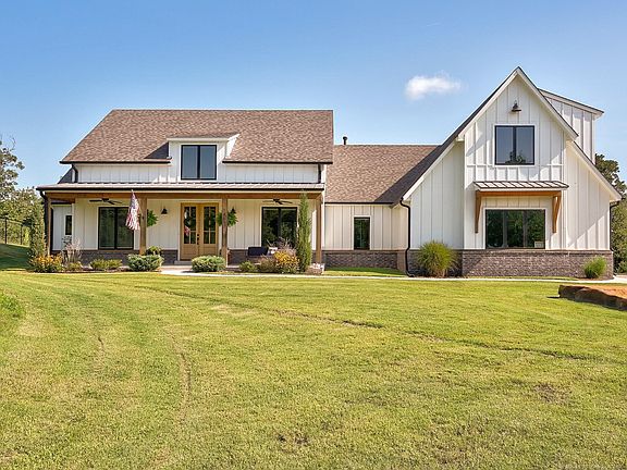 Rural luxury at it's finest is what awaits as you wind your way through Bixby Ranch Estates before entering the tree-lined drive of this one-of-a-kind 5.79 MOL acre estate. This open, bright modern-farm style 2018 Ruhl construction home spared no expense in providing top of the line amenities at every turn. All living on main floor with 600+ sqft MOL unfinished bonus space upstairs. Outside, you will find walking trails, access to Snake Creek, and horses permitted. Truly the "white rhino" of Bixby living!