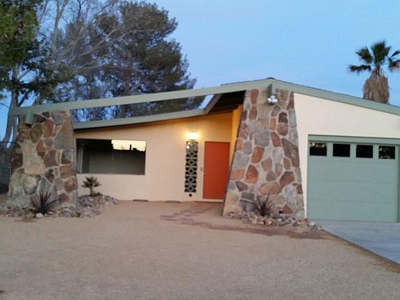 MUST SEE!!! Lovely Mid Century Modern Home. Fully rehabbed while still maintaining the Architectural integrity. New EV plank flooring throughout the kitchen and living areas, and new carpeting in bedrooms. Large family room with original stone fireplace, vaulted and beamed ceilings, large picture windows looking to the outside deck. Kitchen has new quartz counter tops, new sink and faucet, new dishwasher, garbage disposal, indoor laundry room and mud room. There is an additional two car garage in the back of the property that could be used as a work shop. Baseboard heating throughout the home, new water heater and new A/C system to be installed at close of escrow. The property RV accessible. Beautifully landscaped, amazing views of the mountains.