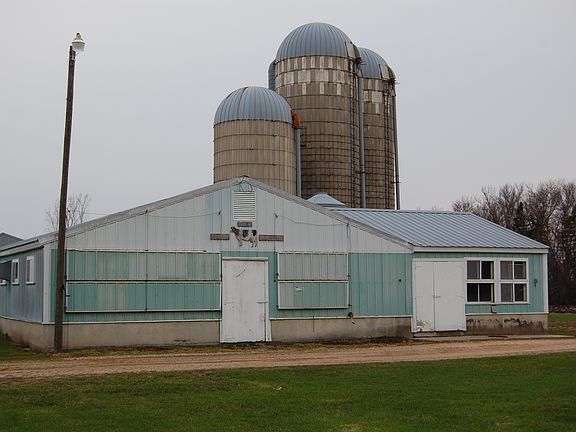 NEW LISTING: Extraordinary 2 story home featuring a magnificent floor to ceiling fireplace crafted from petrified wood, a large antique chandelier, and an open stairway to upper level with full view of the open floor plan below. Plenty of room for entertaining guests and family with raised formal dining room, spacious kitchen with bar, dining area and large private deck. Formal living room provides plenty of sunshine with large picture window and 3 skylights in the vaulted ceiling. Relax in the music room or enjoy the surround sound that is piped in throughout the house. Main floor laundry, office with built in cabinets, and guest bath with sunken whirlpool tub. Upper level den area over looks the great room. 4 upper level bedrooms complete with master bedroom with patio doors to balcony & a master bath! Poured, dry basement includes large family/recreation room, canning kitchen, craft room, utility/mud room, and extra room. 2 electric furnaces with cost effective heat pump, 200 amp breakers, Marathon water heater, updated septic (2014'), and rural water. Located on 14.07 acres this property has numerous uses with the large home and many outbuildings. Machine shed (40'x62'), pole barn (24'x48'), farm shed (40' x 8'), 2 hay sheds (30' x 60'), west dairy barn (100' x 34'), and east dairy barn (110' x 40'). Convenient oversized attached double garage with access to basement.