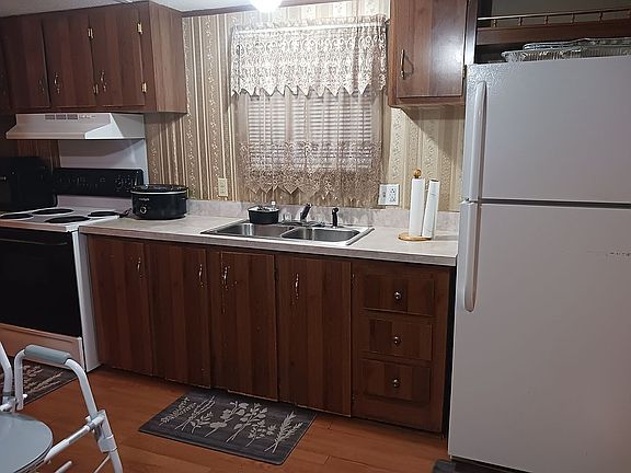 The home has 3 bedrooms fully furnished. Laminate flooring in kitchen, wash area, and dining room. Living room, hallway, bedrooms 2 and 3 has hardwood flooring. Master bathroom has walk in shower. Window AC with heat in dining area keeps the entire house warm in winter and cool in summer.