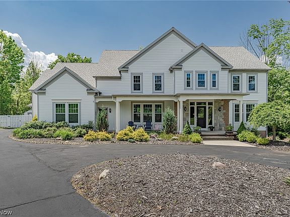 Move right into this stunning, extensively updated colonial on 2.43 acres in Chagrin Falls! This beautiful home was extensively updated just a few years ago with no stone left unturned. Highlights include a beautifully remodeled kitchen, renovated bathrooms, gleaming hardwood flooring, crisp neutral paint, and high-end finishes throughout! The front door opens from the front porch into a welcoming foyer. To your left is a spacious living room with a tray ceiling and elegant wainscoting. Head back to the kitchen that boasts a full complement of high-end stainless steel appliances, granite countertops, a massive center island, and a granite tile backsplash. The kitchen is open to a sun-filled dining room with a built-in desk and access to the back deck. The kitchen is also open to a delightful sitting room with built-in bookshelves and a two-sided fireplace that can also be viewed from the adjacent family room. Off of the foyer, there is a generously-sized office and a full bathroom. On the other side of the home, there is a bedroom, a half bath, a mudroom, a very spacious pantry, and access to the attached 2-car garage. Two sets of stairs ascend to the second floor, where you will find four bedrooms including the primary suite. Here you will find a luxurious ensuite full bath, a roomy dressing room, and a spacious bedroom with a sitting area and a fireplace. Another bedroom has an ensuite full bath, while the remaining two share a jack-and-jill. The lower level includes a very spacious rec room as well as a storage closet and utility room. Outside, there is a fully fenced-in back yard with a tiered deck, shed, and playset! Conveniently located just minutes away from shops and amenities. Don't miss this one!