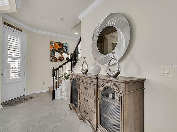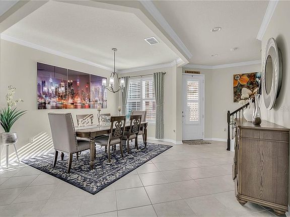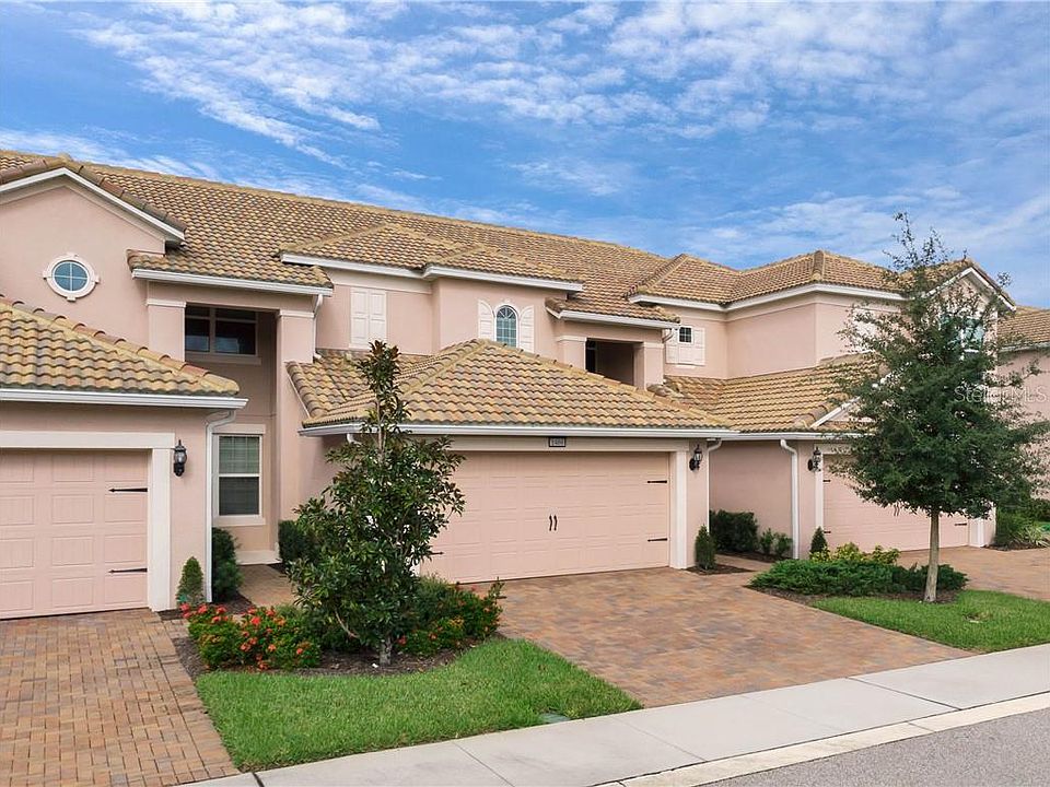 Welcome home to this pristine, magnificent townhouse in the highly desirable guard gated community of Bella Trae in upscale Champions Gate. The first floor offers an open plan featuring a large kitchen with eat-in space, island, and beautiful granite counter tops. Inside utility room, 1/2 bathroom and large pantry are located directly off the kitchen. Out back is an oversized screened in patio with a beautiful water view. Upstairs is a large master suite, boasting a bathroom with separate shower and soaking tub, dual sink vanity and a grand walk in closet. 2 further bedrooms and a full bath. Attached 2 car garage with opener. Bella Trae is a guard gated community with a 12,500 square foot private clubhouse featuring a state of the art fitness center, heated pool & hot tub, putting green and much more. The HOA fees include, grounds maintenance, high definition cable, high speed internet, pest control, and building maintenance. Conveniently located to I 4, restaurants and shopping. This is maintenance free living at its best!