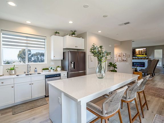Welcome to 1466 El Nido Dr—a rare, end-unit townhome offering 4 bedrooms and 3.5 baths, including dual primary suites (one on the first floor). With over 1,000 sq ft of private outdoor space, the finished backyard with turf and pavers is perfect for entertaining 20–25 guests or letting the kids play freely. Enjoy added privacy with only one shared wall and no rear neighbors. Inside, you'll find laminate plank flooring throughout, no carpet, and a stunning fireplace with quartz surround and wood mantel. The open-concept layout flows through the upgraded kitchen, dining, and living areas. Features include a 2-car garage plus an extra parking space, and the home is just a 5-minute walk to Otay Ranch Mall, restaurants, a movie theater, and more. The community offers a pool, spa, playgrounds, BBQ area, and a future 2-acre park—a perfect blend of comfort, style, and convenience!
